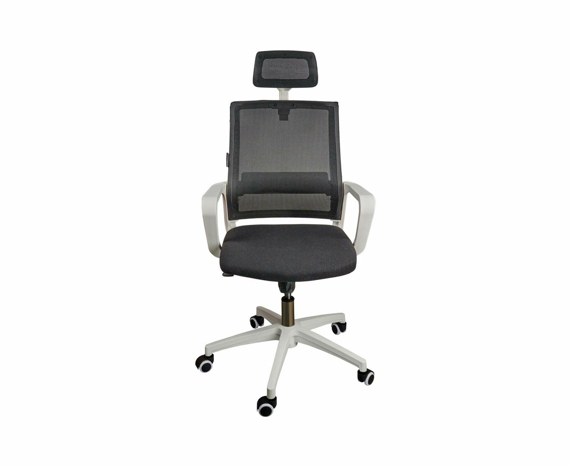 Кресло офисное Norden Бит белый пластик / серая сетка / темно серая ткань