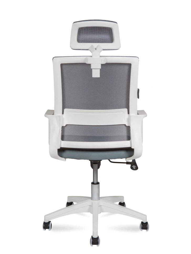 Кресло офисное Norden Бит / белый пластик / серая сетка / темно серая ткань