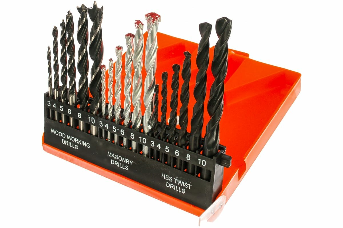 Набор сверл по бет,мет,дер SPARTA 18 шт, пластик.бокс(725305)