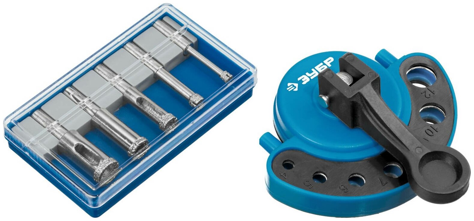 ЗУБР Ø 4-12 мм, Р 60, 5 шт., набор сверл алмазных трубчатых по керамике с кондуктором 29851-H6 Профессионал