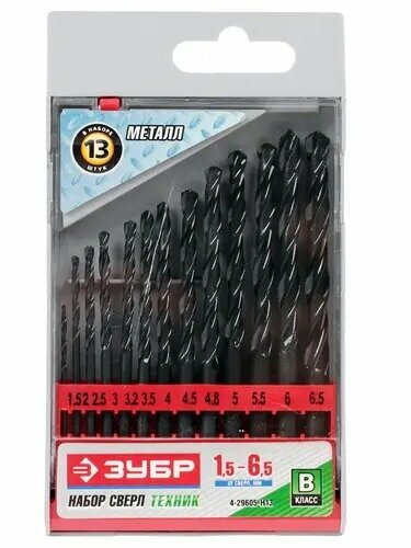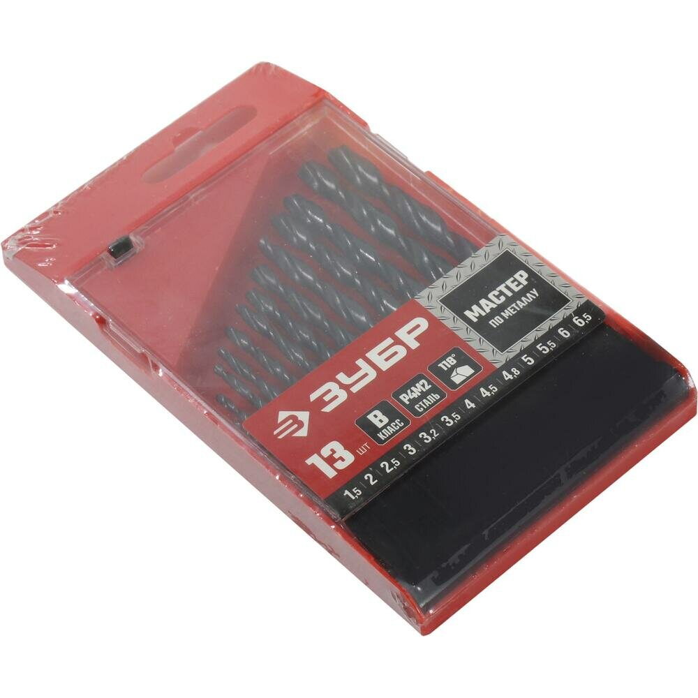 ЗУБР мастер 13шт(1.5-6.5мм), Набор сверл по металлу, сталь Р4М2, класс В, 29605-H13
