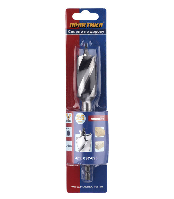 Практика Сверло 3-х заходное по дереву 25x165мм в блистере 037-695 .