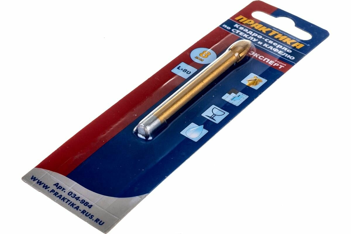 Практика Сверло по стеклу Квадро ф 8мм блистер 034-984 .