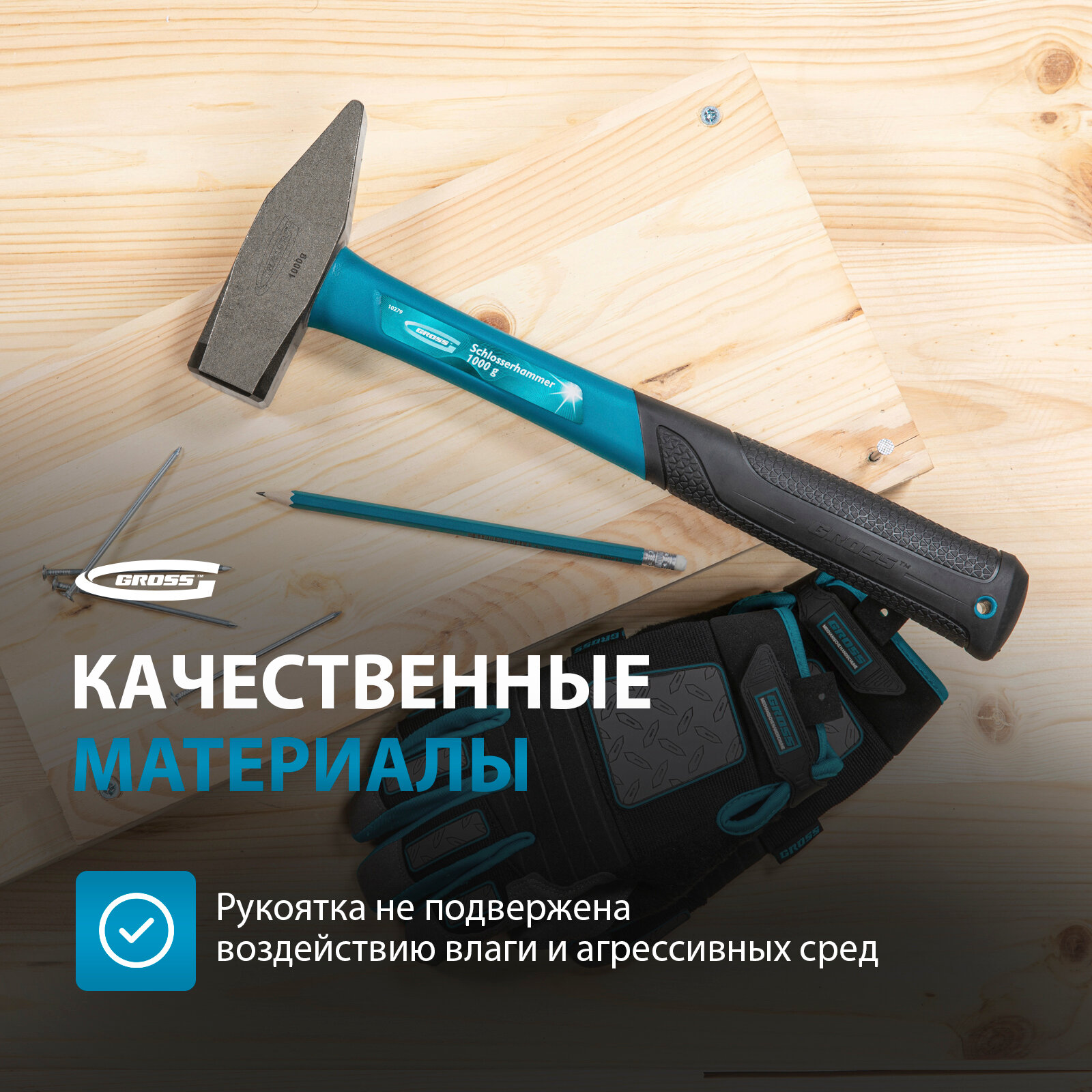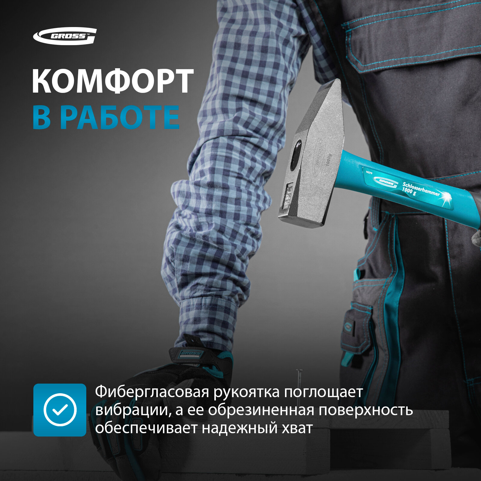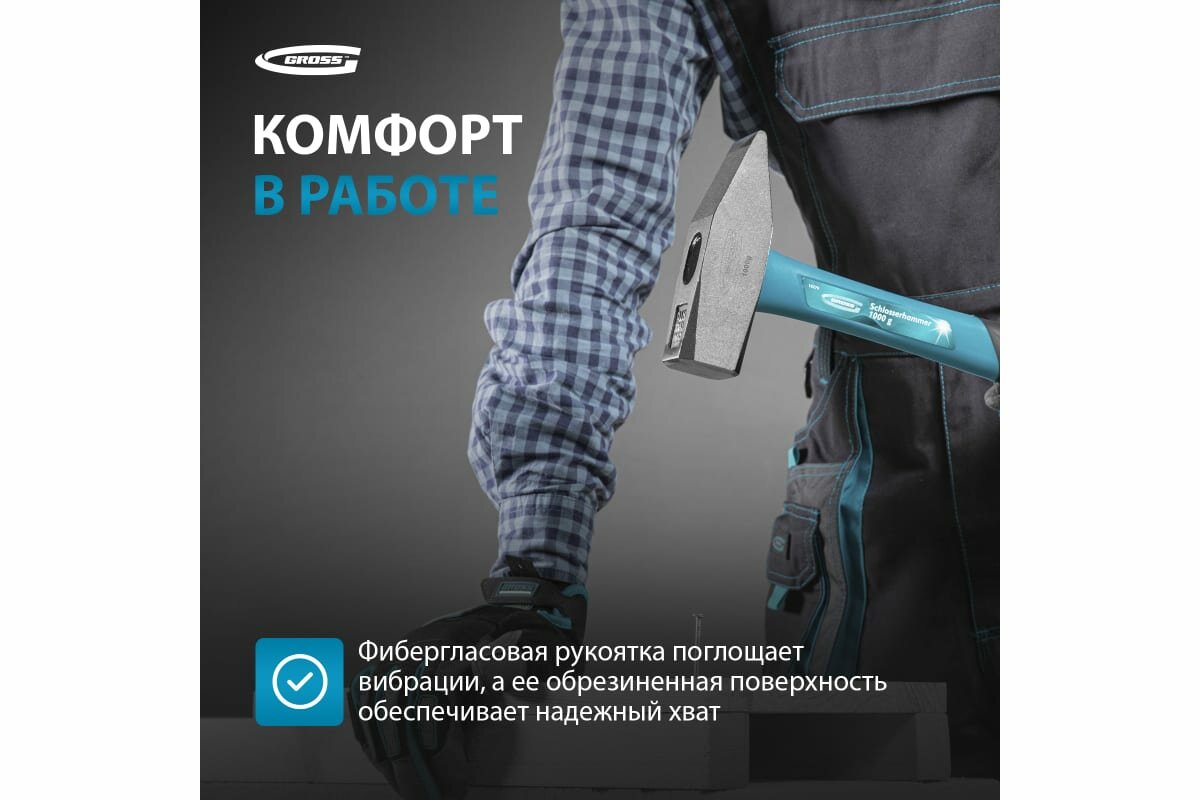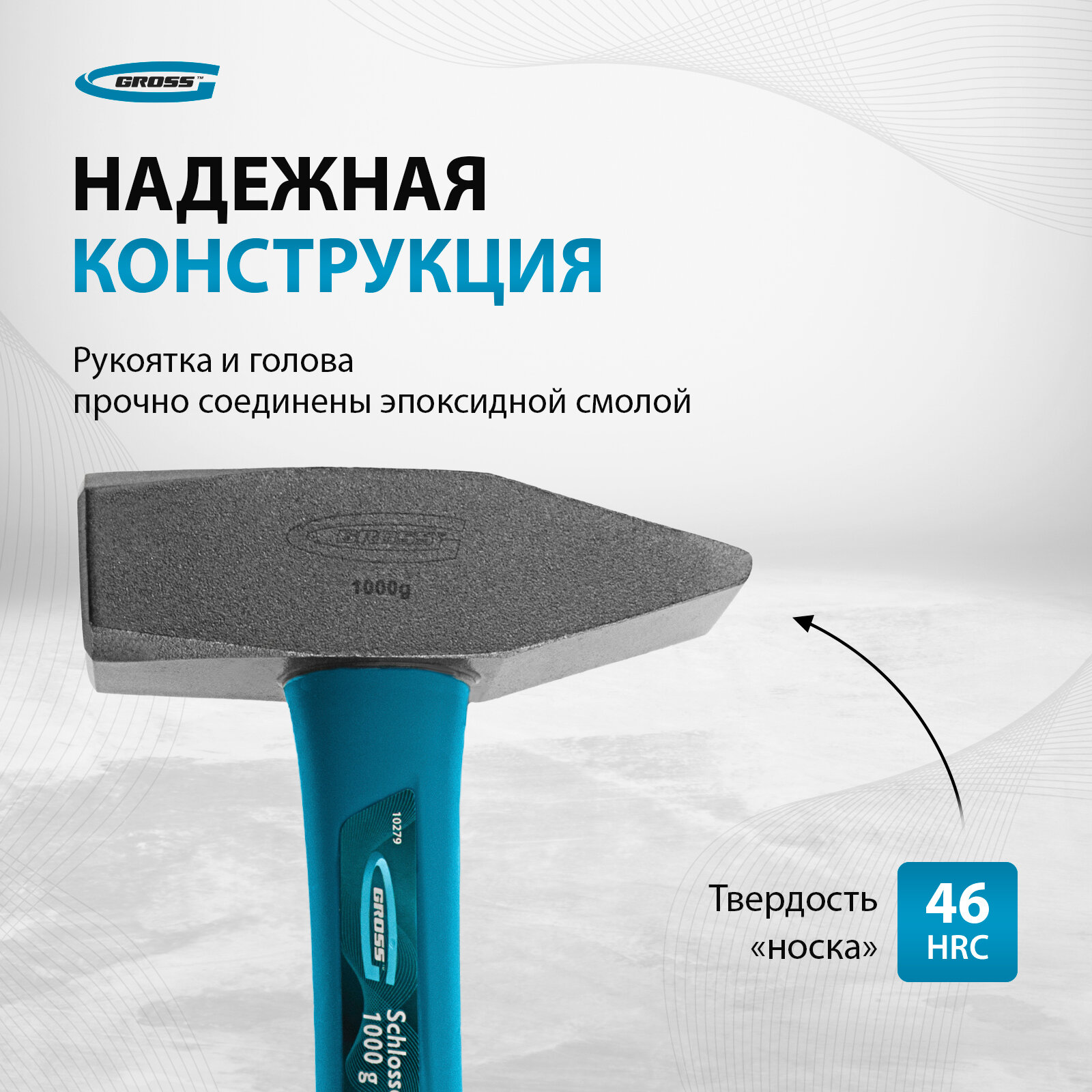 GROSS Молоток слесарный, 1000 г, квадратный боек, фибергласовая обрезиненная рукоятка Gross, ( 10279 )