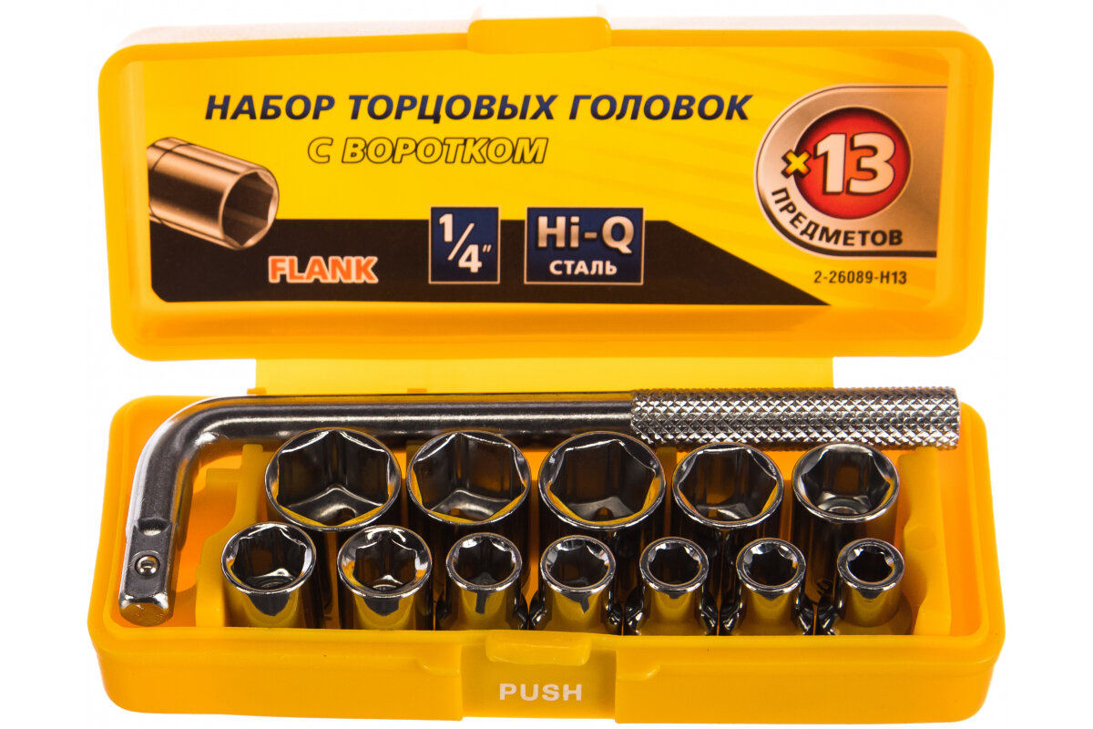| Головки торцевые подробно | 1/4" (Flank): 4, 4.5, 5, 5.5, 6, 7, 8, 9, 10, 11, 12, 13 мм |