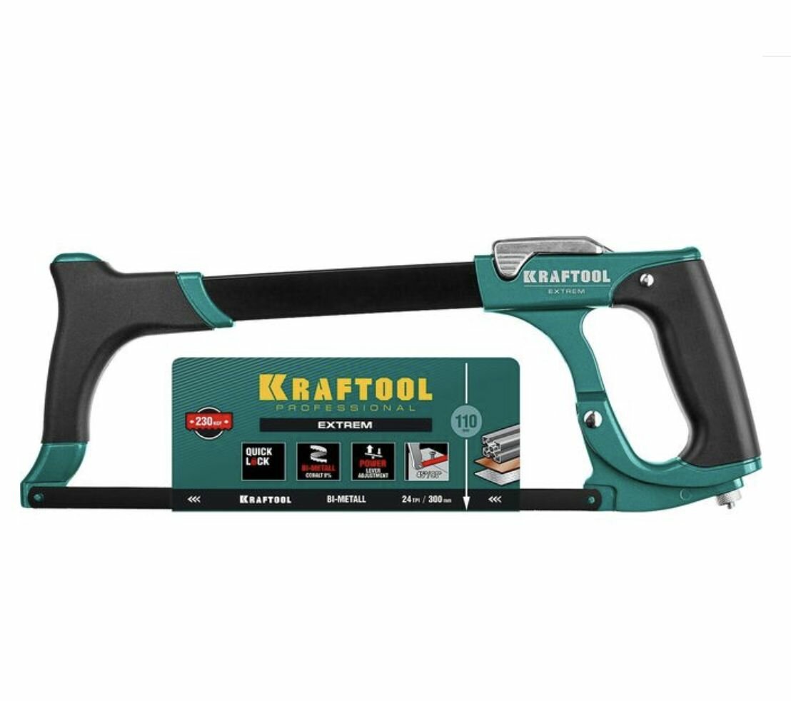 Ножовка по металлу Kraftool Extrem, 300 мм, глубина 100 мм, 230 кгс, 24 TPI, арт. 15802