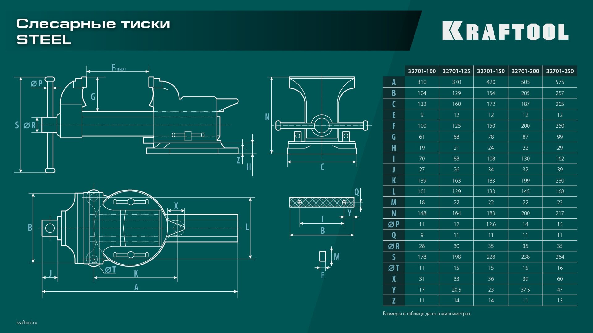 Стальные слесарные тиски Kraftool Steel, 150 мм 32701-150 32701-150 .