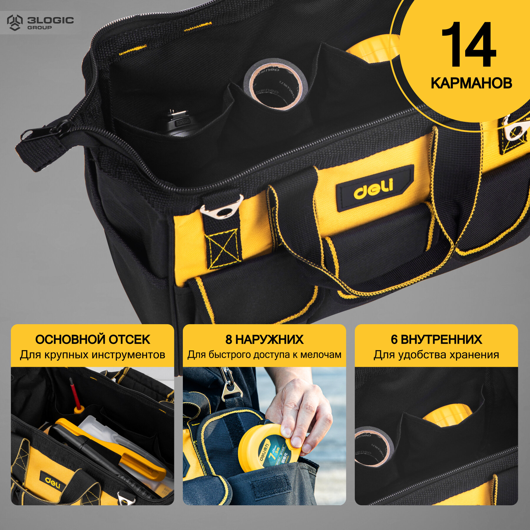 Ящики, сумки для инструментов Deli Сумка для инструментов Deli DL430116 360 x 180 x 250мм, 14 карманов, плечевой ремень, ткань Оксфорд