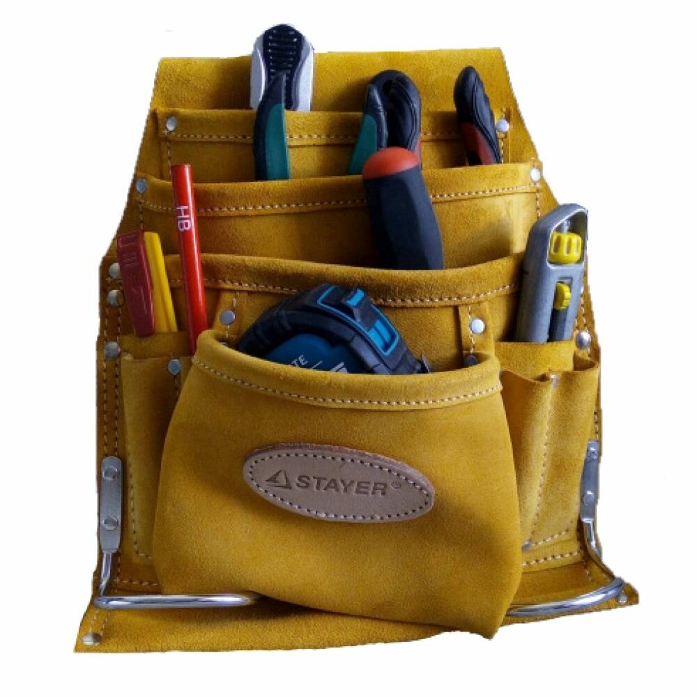 Купить Сумка поясная Stayer Profi для инструментов, кожаная, 10 карманов, 2 скобы