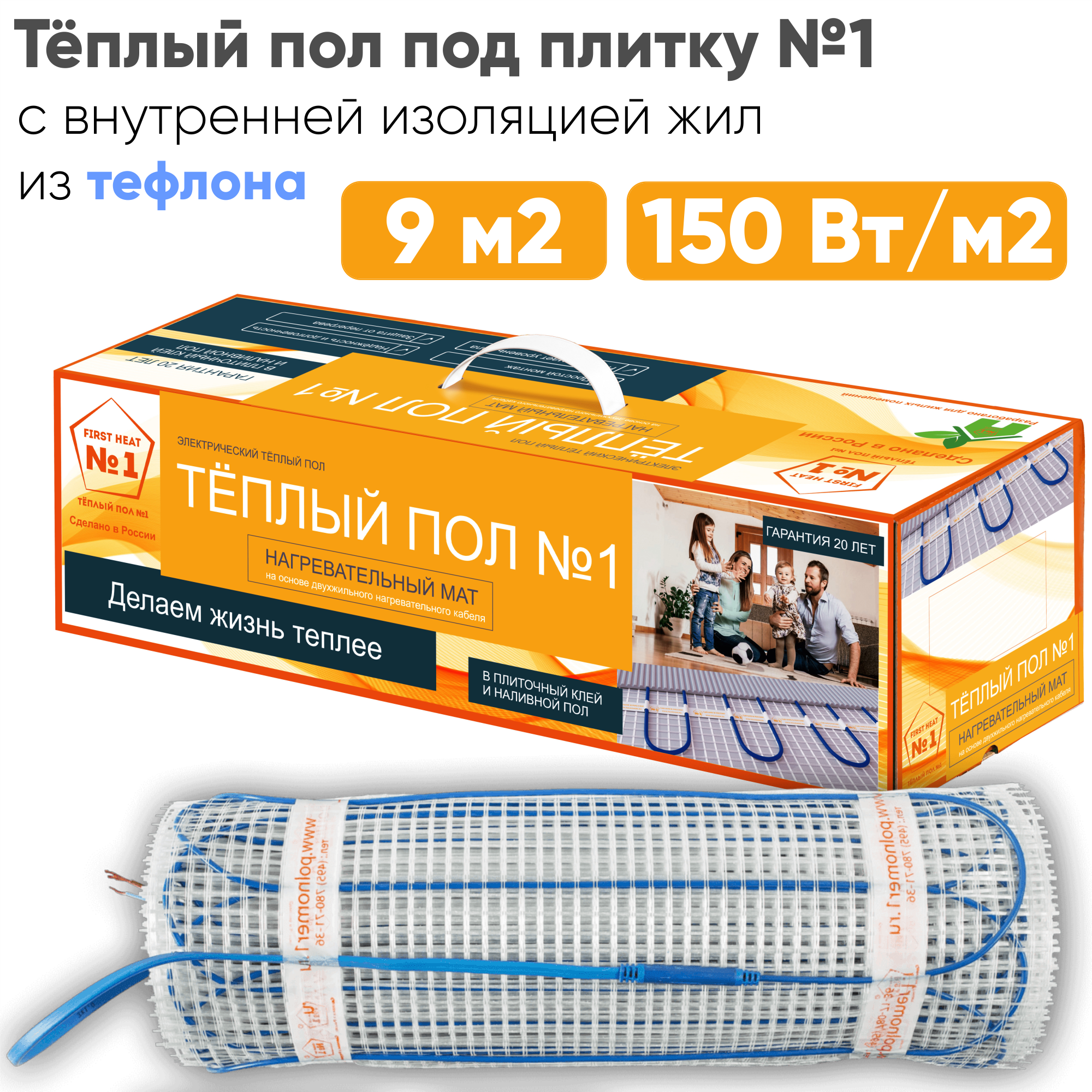 Купить Нагревательный мат "Теплый пол №1" 1350Вт-9м2