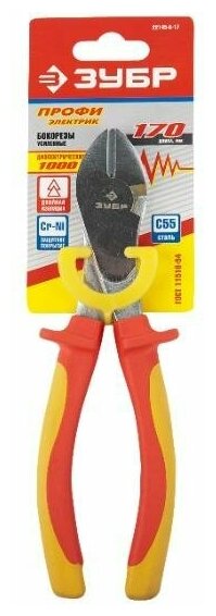 Бокорезы профиэлектрик, диэлектрические, усиленные, двухкомпонентная маслобензостойкая рукоятка, до ~1000В, 170мм, ЗУБР Профессионал 22145-6-17 Зубр 22145-6-17