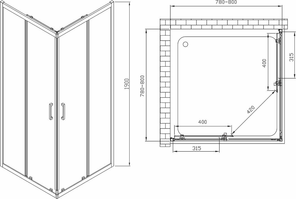 Душевой уголок Alpha VSS-3AL800CL, 800*800, хром, стекло прозрачное