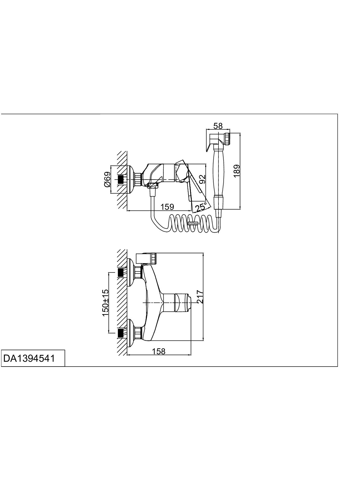 Смеситель с гигиеническим душем D&K DA1394541 настенный хром