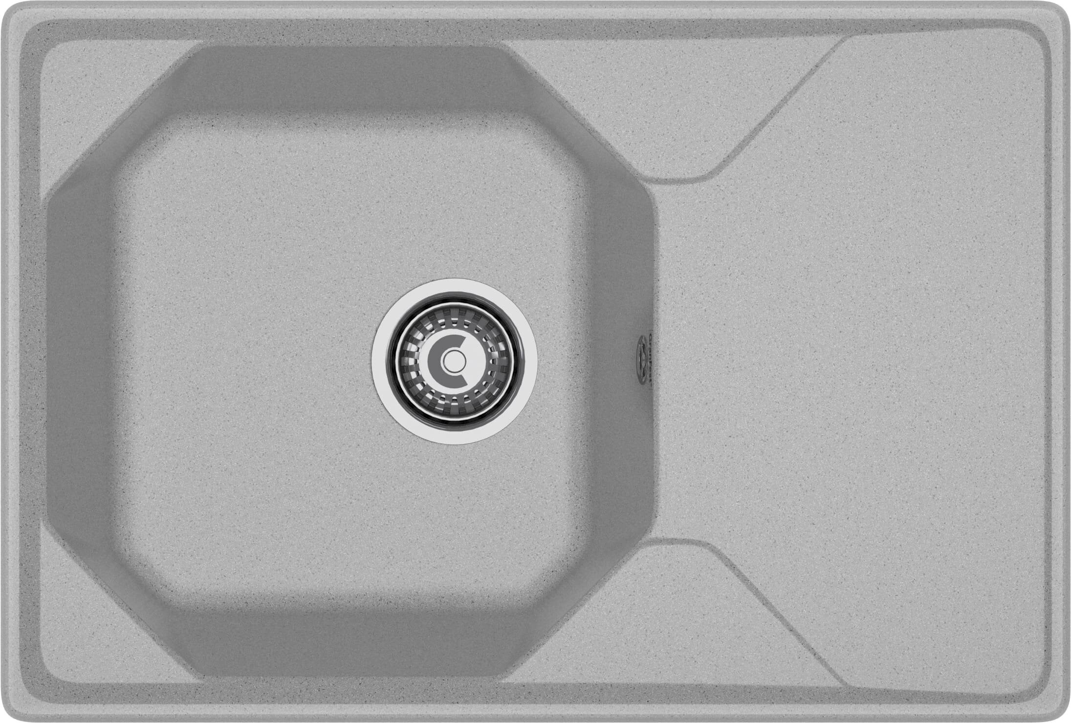 Кухонная мраморная мойка GranFest UNIQUE GF-U-740L, прямоугольная, оборачиваемая, с сифоном и переливом, 740x500 мм, цвет серый/Раковина для кухни