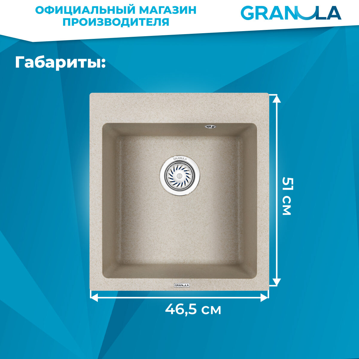 4651, песок, мойка кухонная Granula, одна чаша, 465*510*195 мм