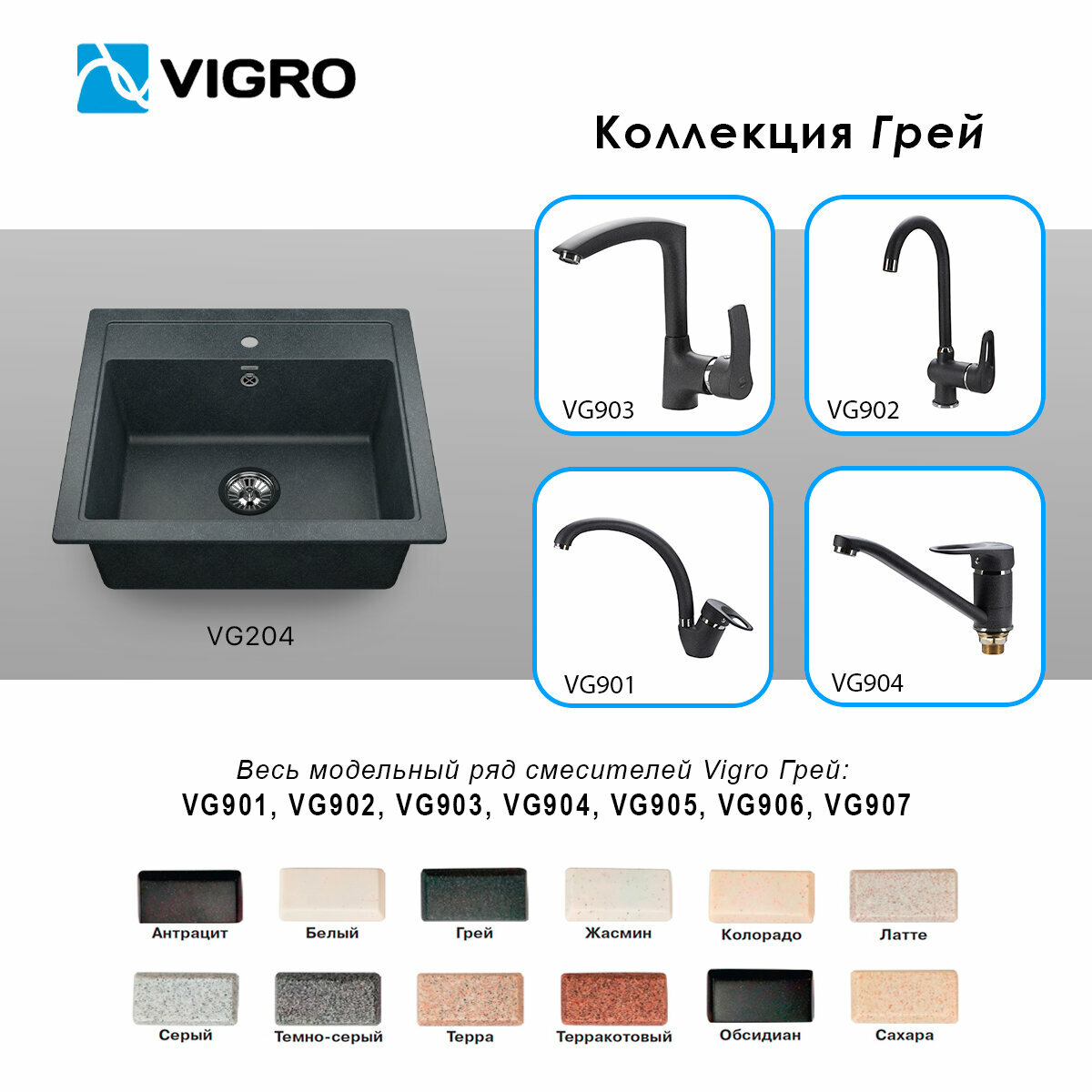 Кухонная мойка VIGRO VG204 обсидиан (585*505*210)