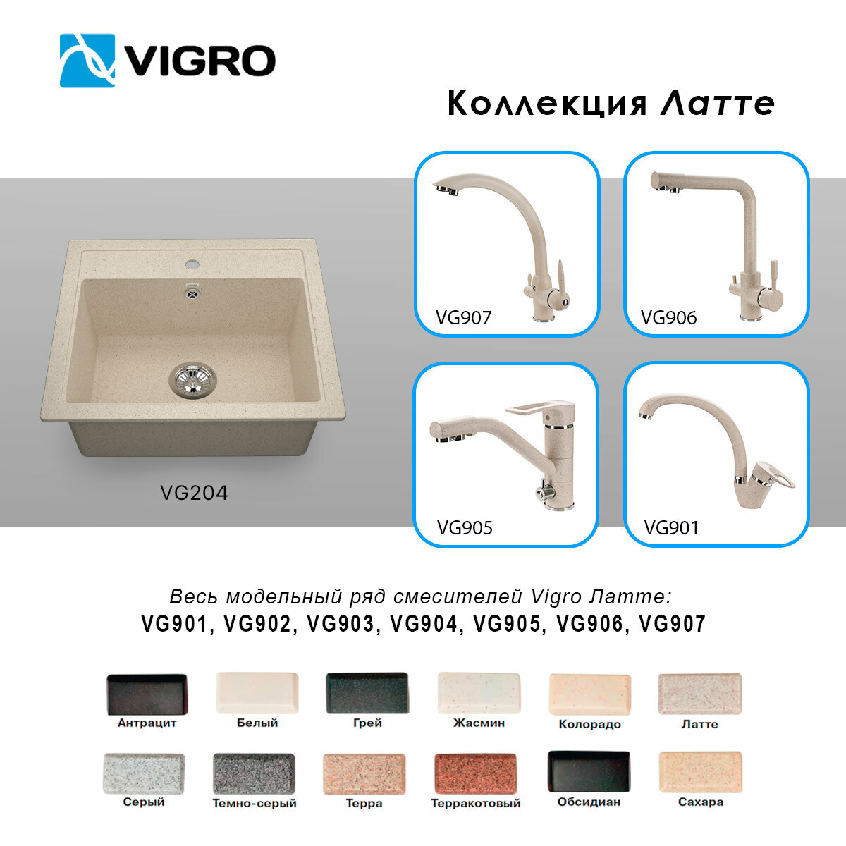 VIGRO мойка для кухни VG204 терра