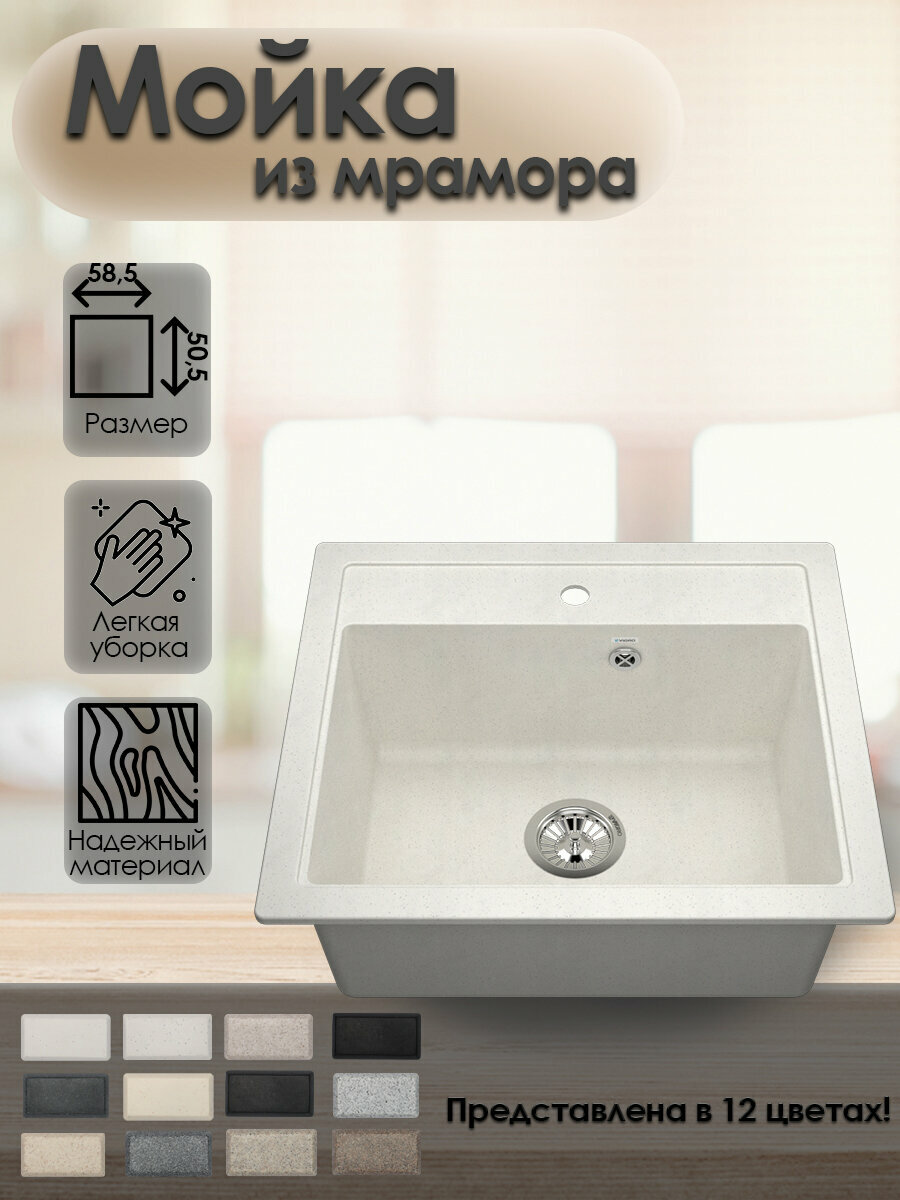 Мойка для кухни VIGRO врезная из искусственного камня (58.5*50.5 см), сахара