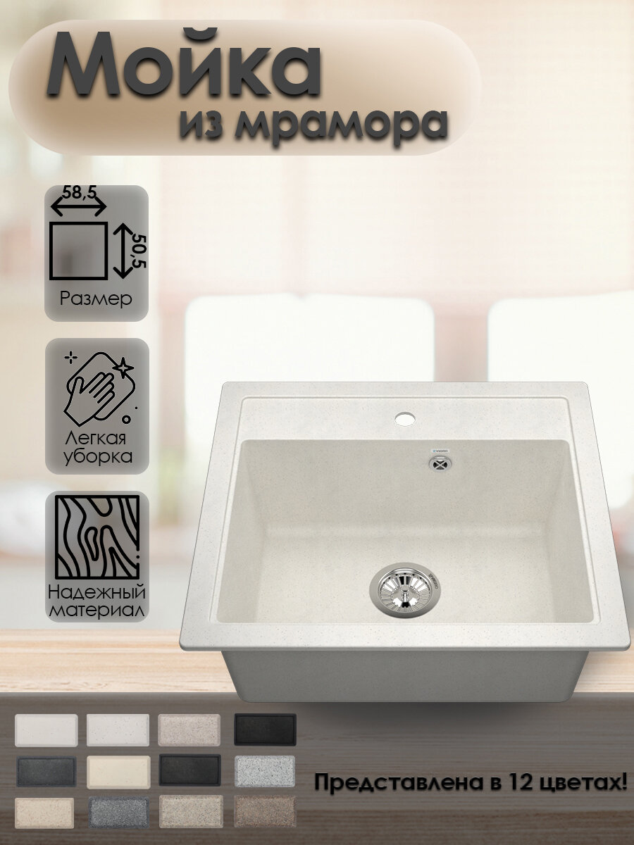 СохранитьМойка для кухни VIGRO врезная из искусственного камня (58.5*50.5 см), жасмин интересное: