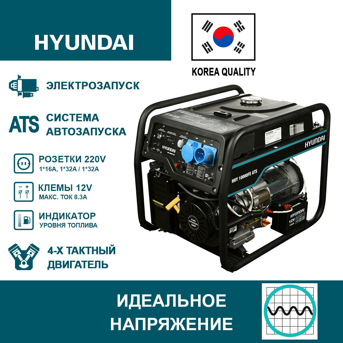 Бензиновый генератор HYUNDAI HHY 10000FE ATS, 230 В, 8кВт