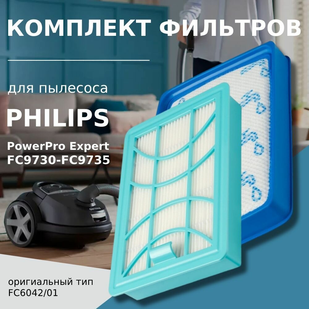 Комплект фильтров для пылесоса Philips FC6042/01, FC9728, FC9730, FC9731, FC9732, FC9733, FC9734, FC9735