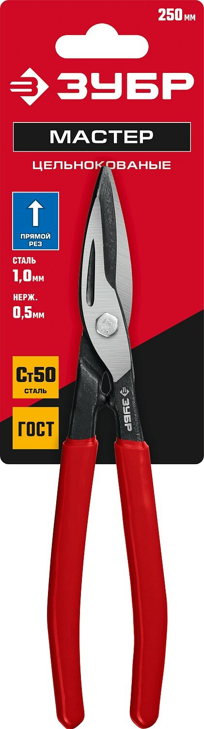 Ножницы по металлу ЗУБР 250 мм, прямые, длина режущей кромки 55 мм, Мастер интересное: