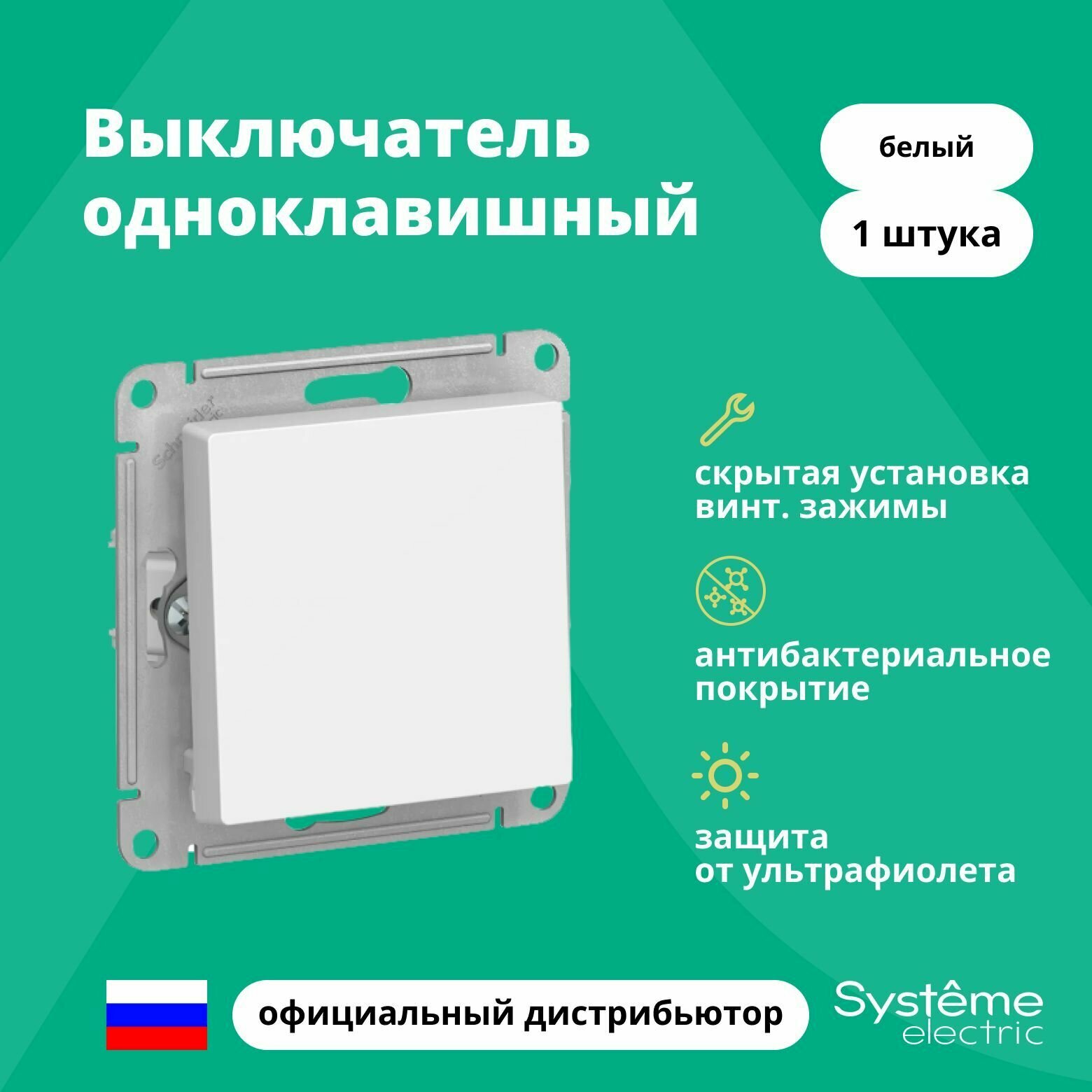 Выключатель Systeme Electric / Систем Электрик AtlasDesign, 10АХ схема 1, белый одноклавишный, ATN000111 / переключатель