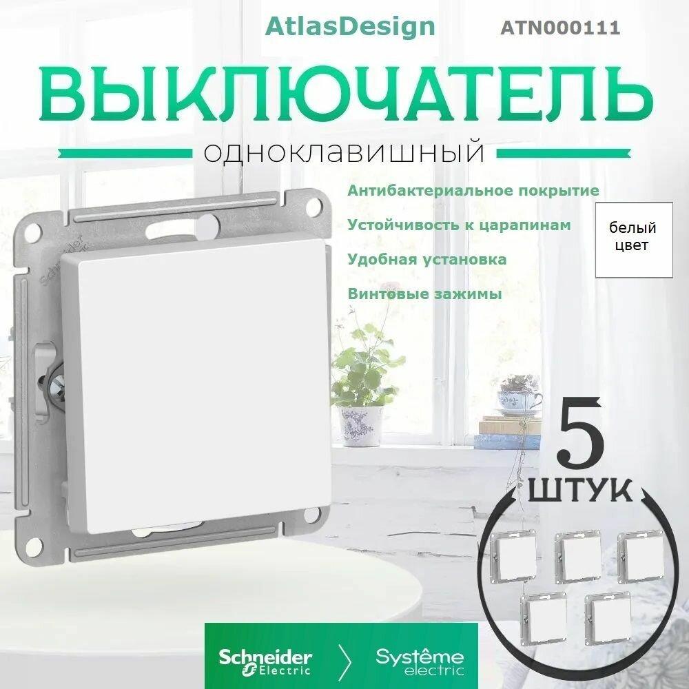 Купить Комплект 5 штук, Выключатель 1-клав. 10А SE AtlasDesign Белый (ATN000111)
