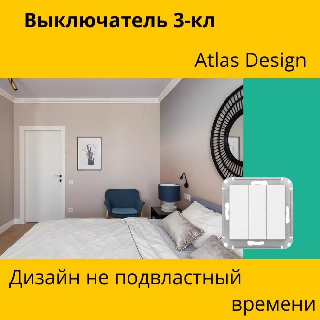 Выключатель трехклавишный AtlasDesign сх.1+1+1, 10АХ, Бежевый, ATN000231 1шт