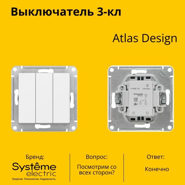СохранитьВыключатель Systeme Electric Atlas Design 3-клавишный, ATN000131 Белый - 10 шт. интересное: