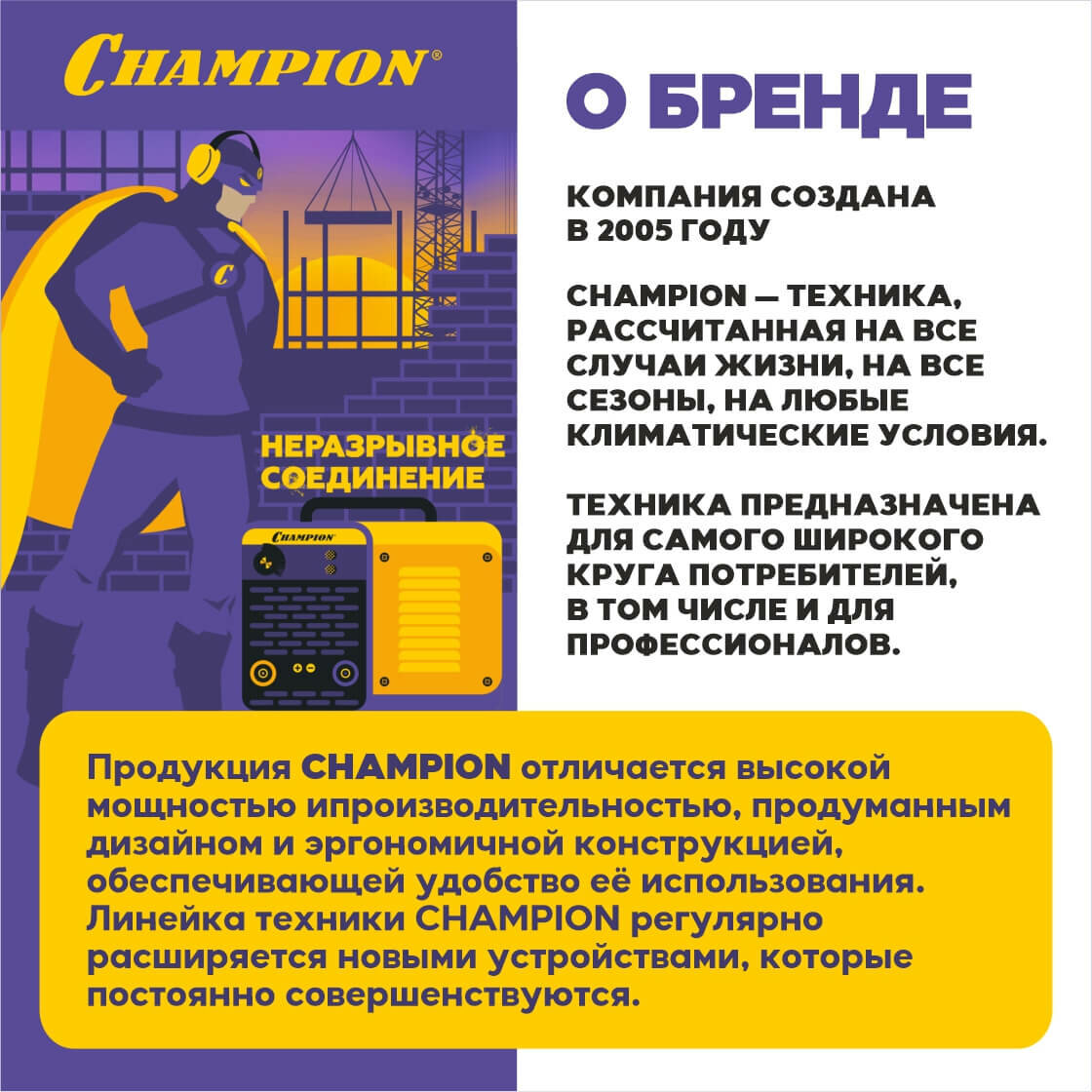 2 сезон зверь на ходу, работает четко, без сбоев, не тарахтит, как я себе представлял. Хороший выносливый двигатель. Ни разу не падали обороты, не прыгало напряжение во время работы, главное, не перегружать аппарат. Из небольших минусов 1 розетка, доставляет некоторое неудобство, но все решаемо. Внушает доверие известность бренда чемпион, множество сервисных центров в России. |