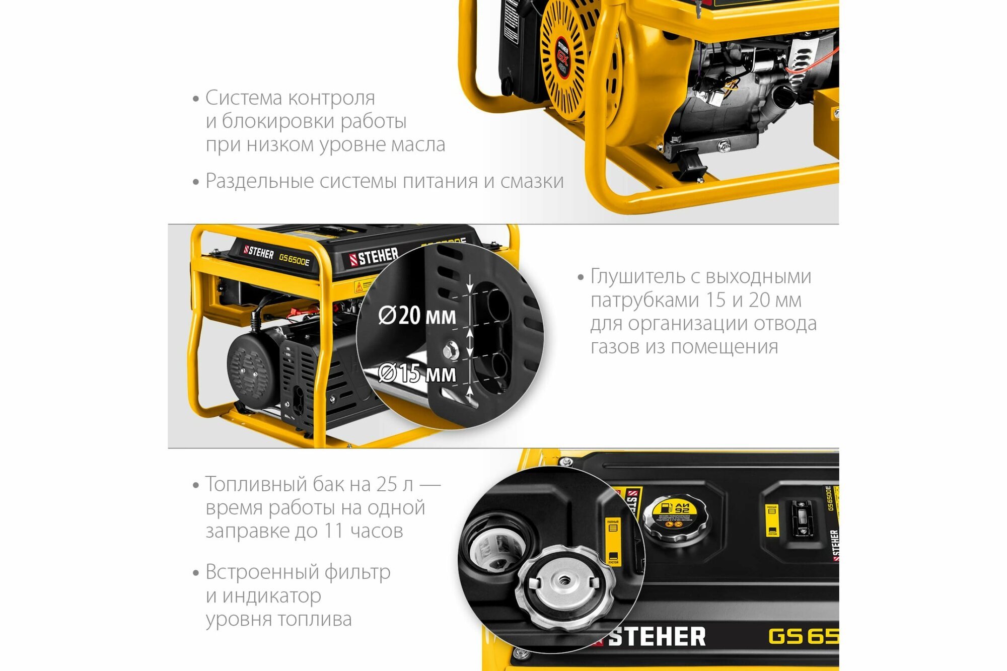 СохранитьГенератор бензиновый STEHER GS-6500 интересное: