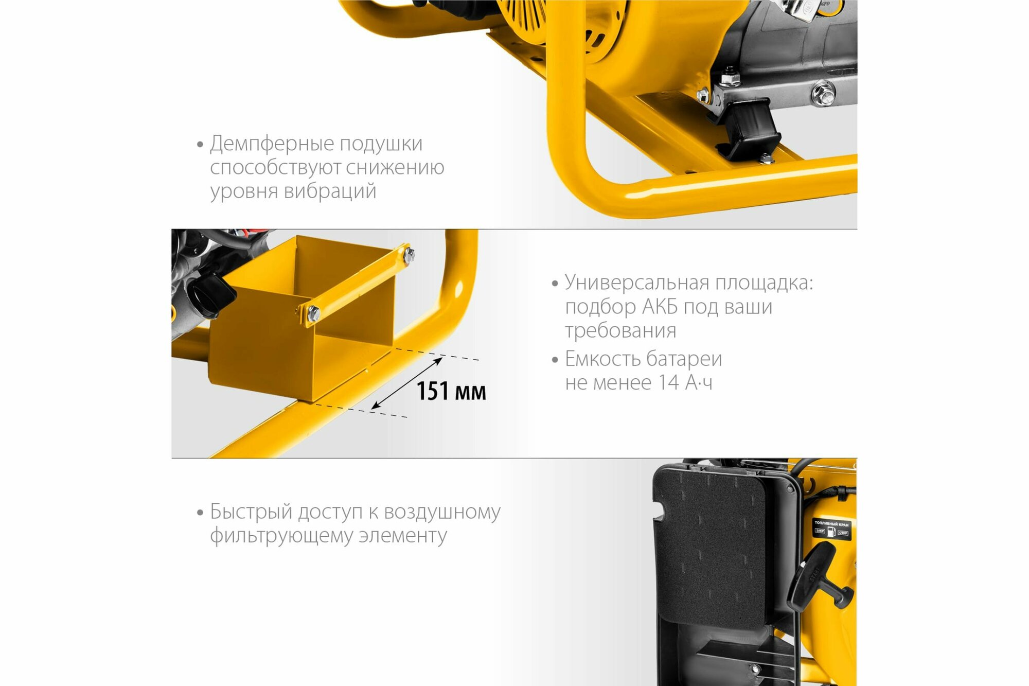 | Плюсы: | Хорошее соответствие цена/качество, малый расход топлива, тянет инструмент до 1.2квт. |