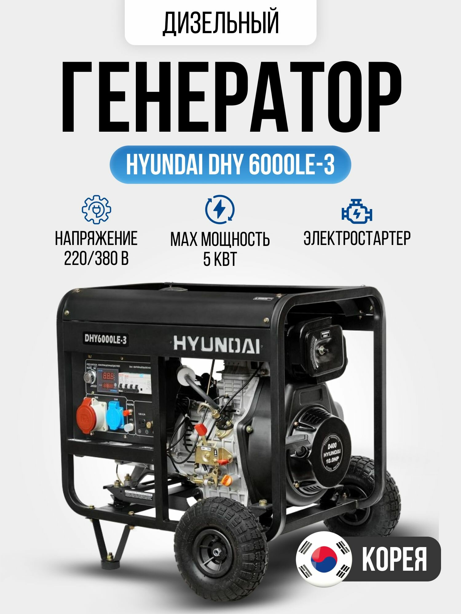 Купить Генератор дизельный Hyundai DHY 6000LE-3