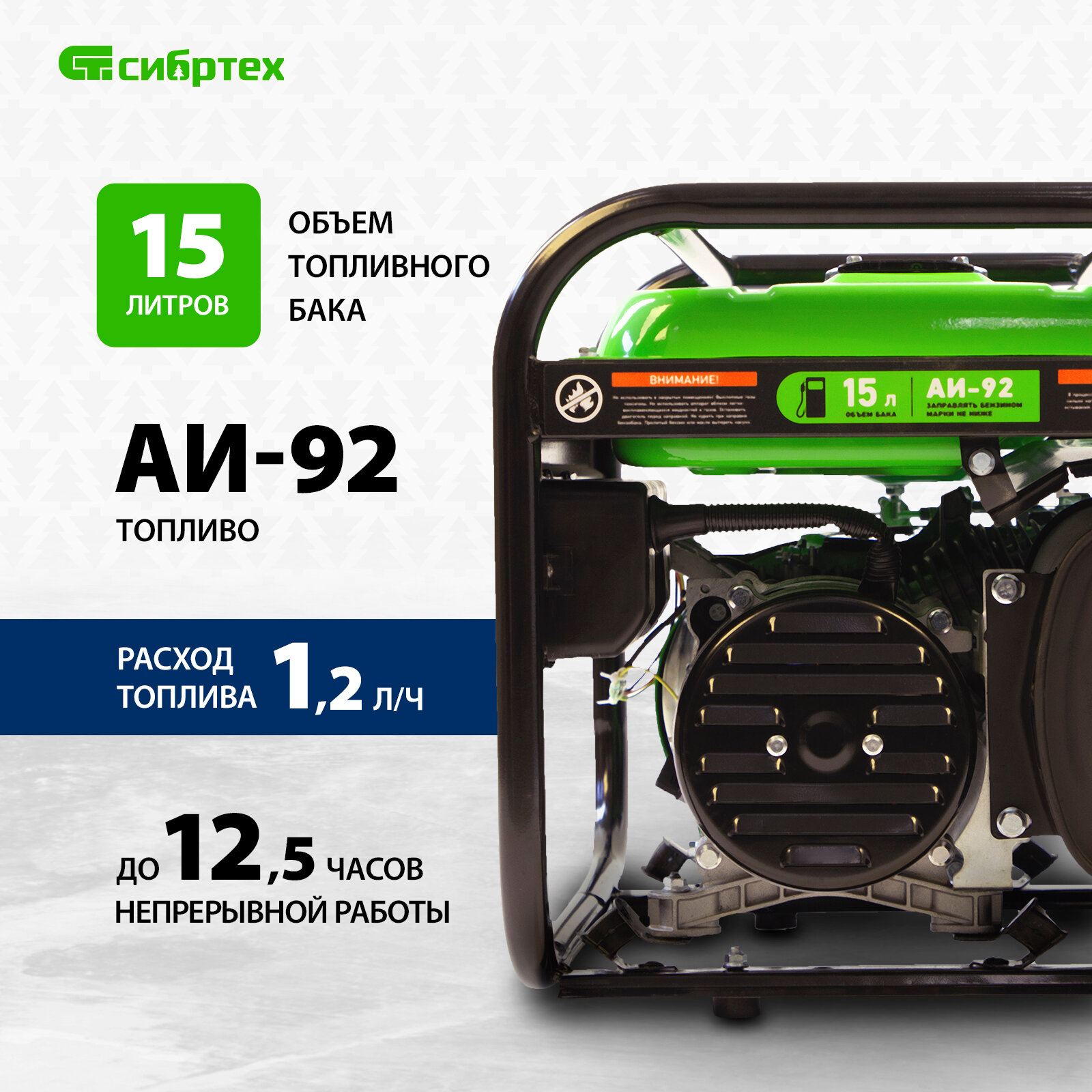 Бензиновый генератор Сибртех БС-2500, 2,2 кВт, 230В, 4-х такт., 15 л, ручной стартер