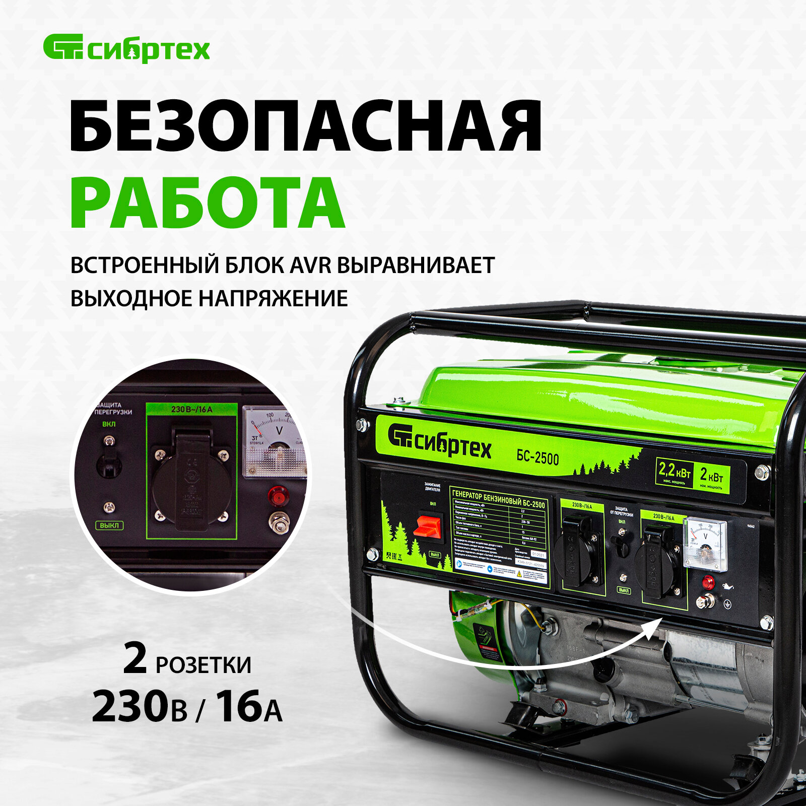 Бензиновый генератор СИБРТЕХ БС-2500, 230, 2.2кВт