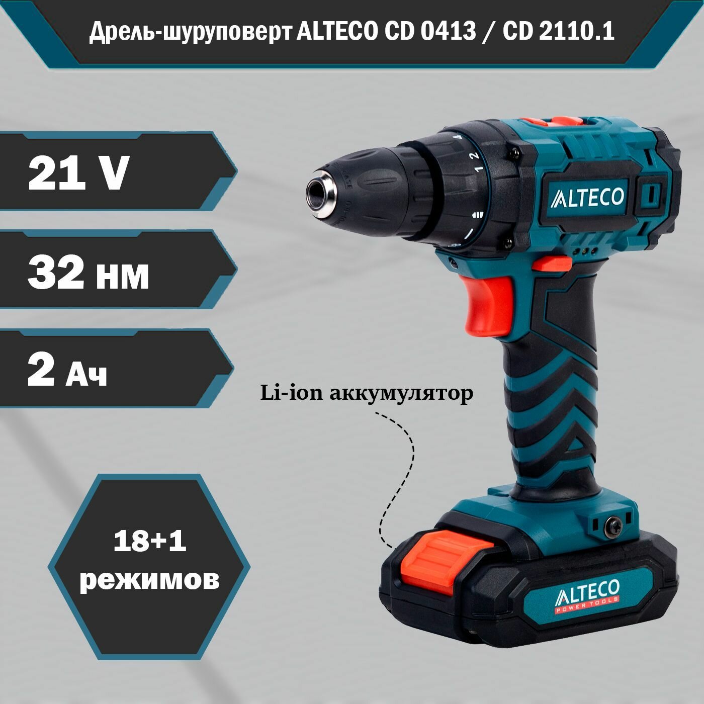 Аккумуляторная дрель-шуруповерт ALTECO CD 0413 (CD 2110.1) / 21V, арт. 27172