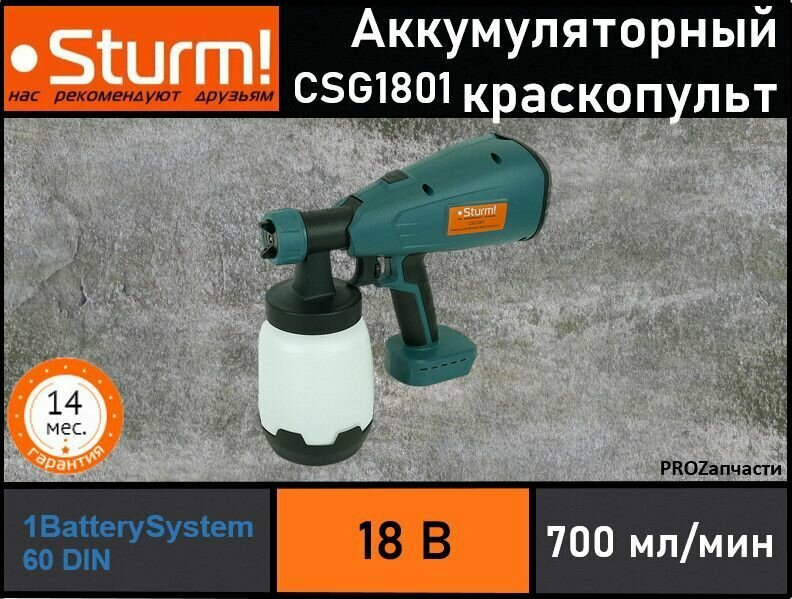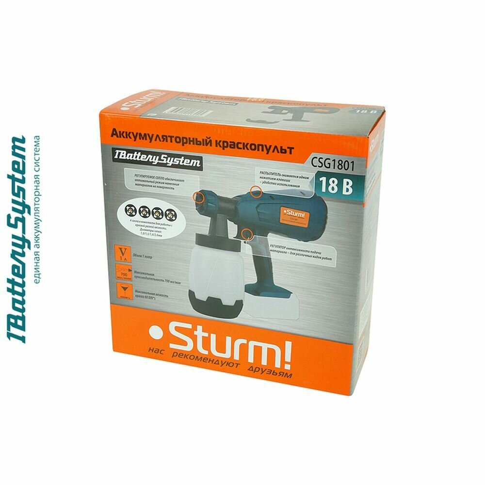 Аккумуляторный краскопульт Sturm CSG1801, 18 В