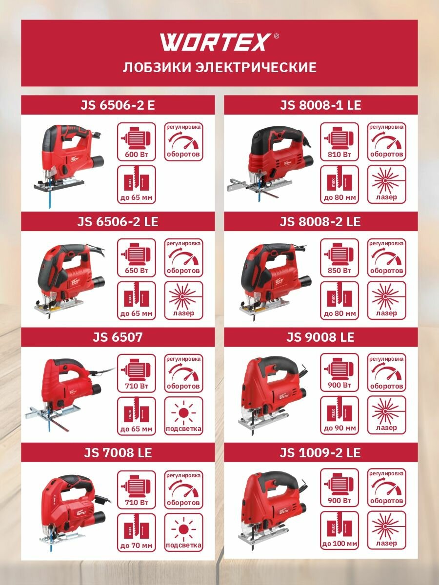 Ниже Вы можете прочитать отзывы на Лобзик электрический Wortex JS 6506-2 LE, в коробке (650 Вт, пропил до 65 мм, лазер, подсветка, литая платформа) (JS65062LE0021), ознакомится с подробными характеристиками, посмотреть интересные обзоры и фотографии на Лобзик электрический Wortex JS 6506-2 LE, в коробке (650 Вт, пропил до 65 мм, лазер, подсветка, литая платформа) (JS65062LE0021).