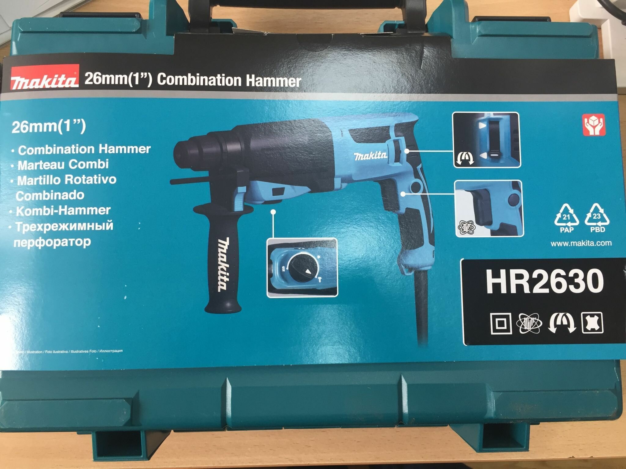 | Плюсы: | Мой личный перфоратор Makita HR2630 доставили в пункт выдачи вовремя))) Не часто покупаю такой инструмент, но скоро он понадобится в новой квартире. Внешне в заводской смазке. В руке лежит приятно. Раньше брал у друга Makita HR2450, но поэтому другие фирмы не рассматривал. Этот немного помощнее (2.9 Дж против 2.7) и переключатель режимов снизу, что понравилось. Шнур 4 метра, страна сборки Румыния. Позже дополню отзыв. |