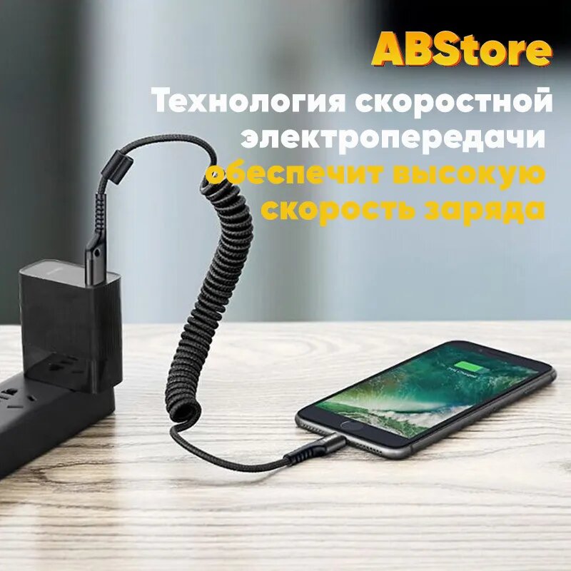 СохранитьКабель для iPhone USB - Lightning 1м 2A Baseus Fish Eye Spring Data // кабель для телефона смартфона Apple iPhone интересное: