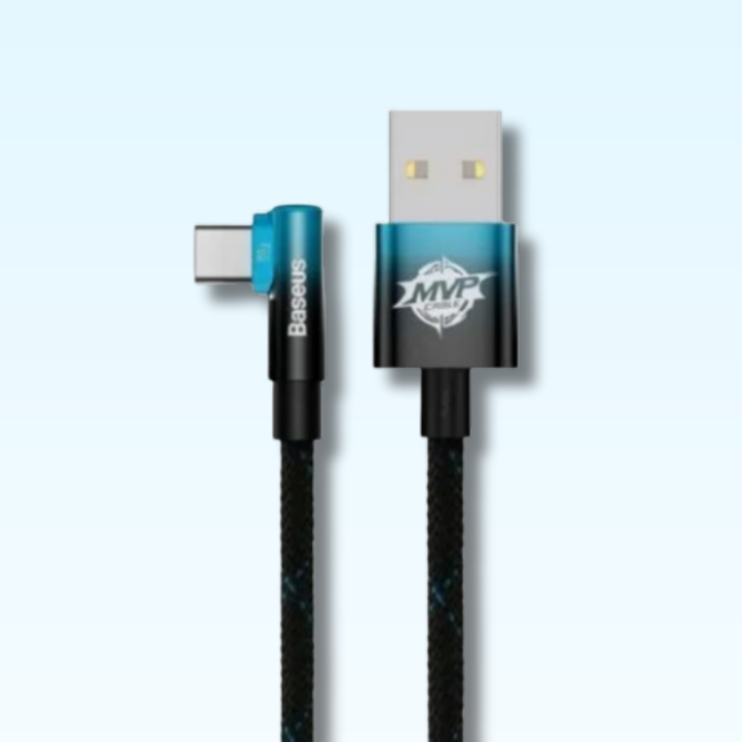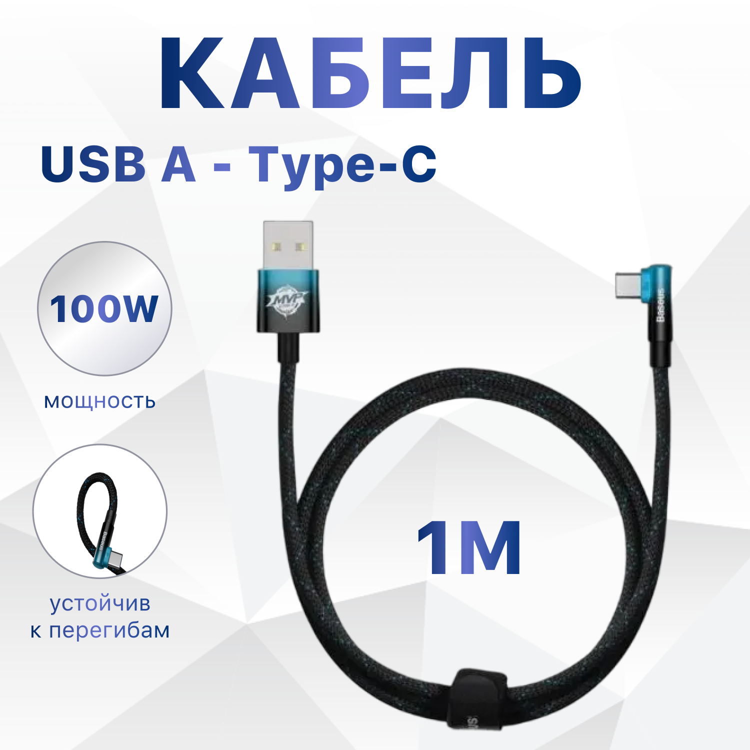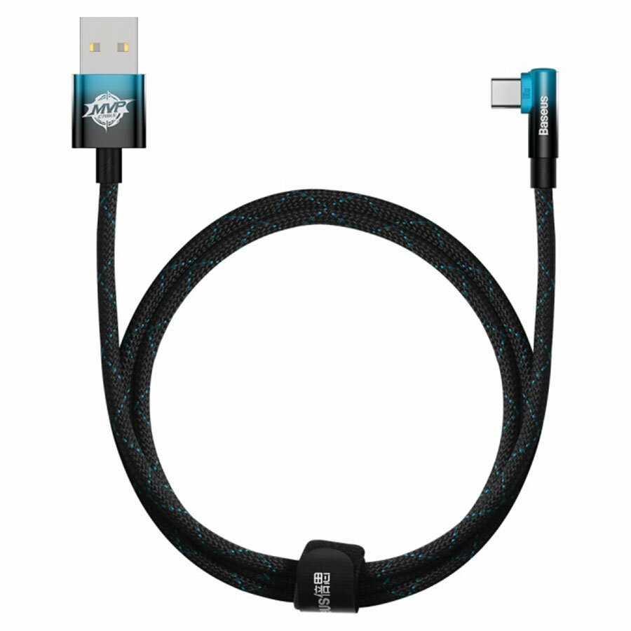 Кабель для игр Baseus MVP 2 Elbow-shaped Fast Charging Data Cable, USB to Type-C, 100 Вт, 1 м, Черный+Синий, CAVP000421