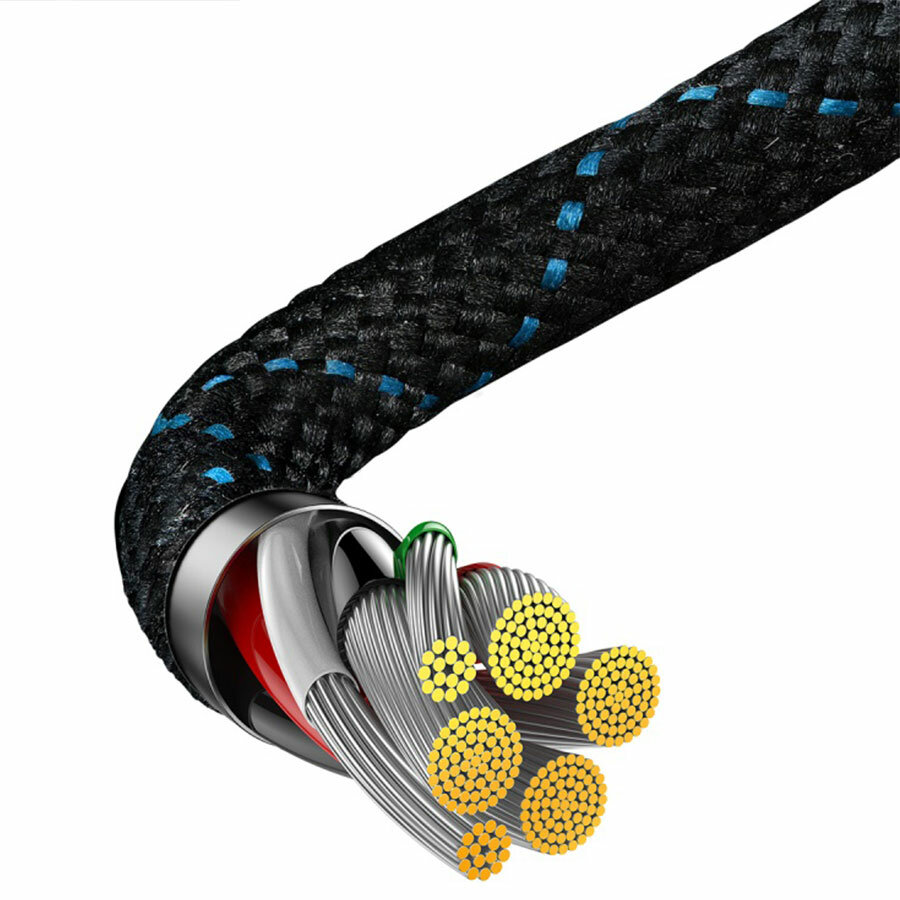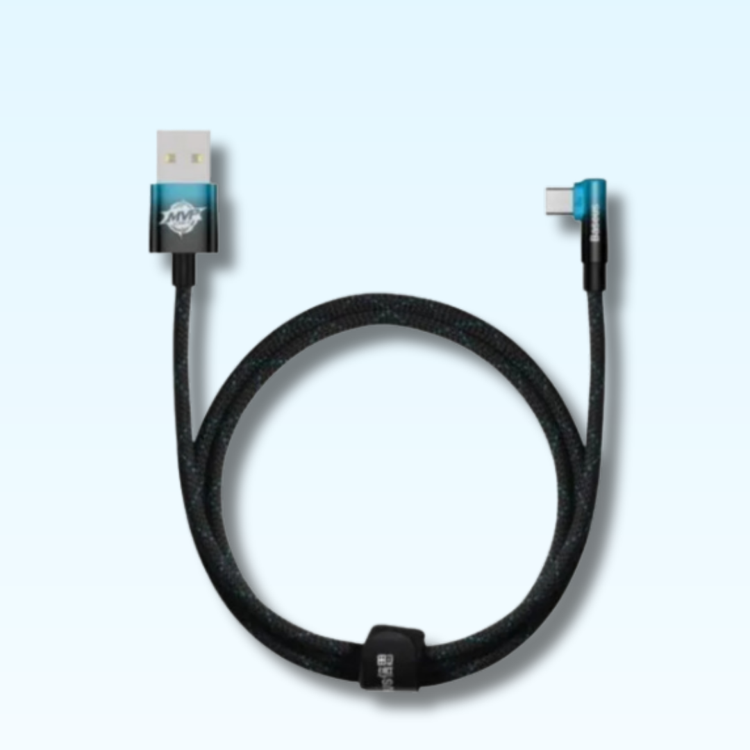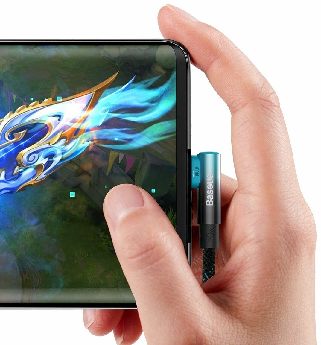 Кабель для игр Baseus MVP 2 Elbow-shaped Fast Charging Data Cable, USB to Type-C, 100 Вт, 1 м, Черный+Синий, CAVP000421