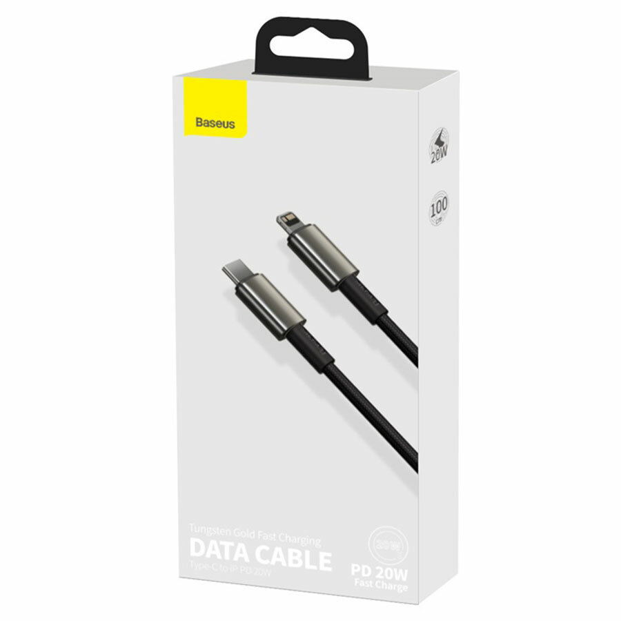 Кабель USB-C BASEUS Tungsten Gold, Type-C - Lightning, 20W, 1 м, черный