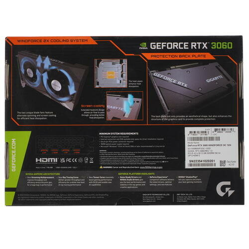 Видеокарта NVIDIA GeForce RTX 3060 Gigabyte 12Gb (GV-N3060WF2OC-12GD 2.0)