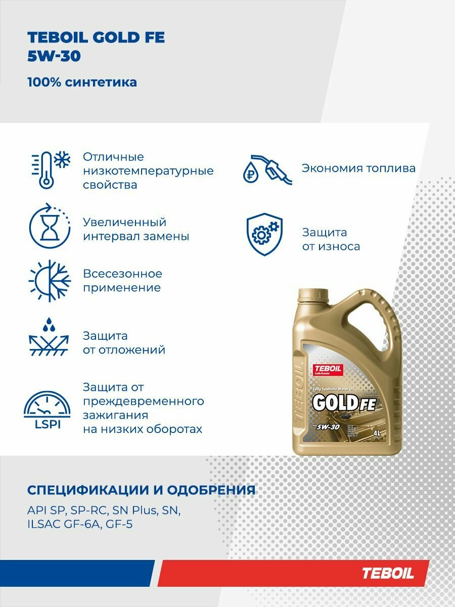 Промо Масло моторное синтетическое TEBOIL Gold FE 5W-30 4+1 TEB-5W30-GFE-4+1