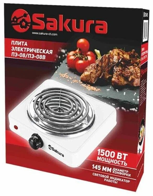 Электроплита Sakura - ПЭ-08В, 1500Вт, 1 конфорка, d-145мм, цвет черный, 1 шт.