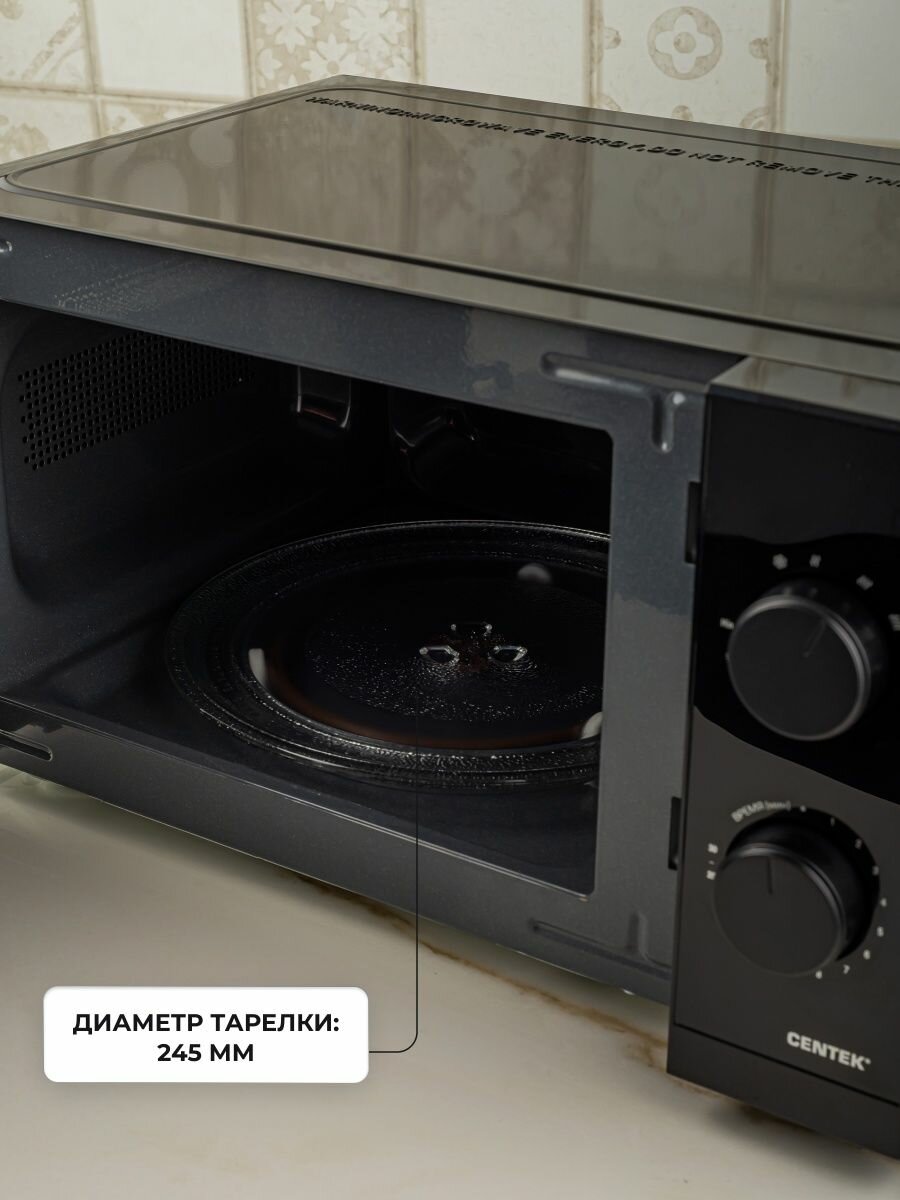 СВЧ Centek CT-1571 (Черный) 700W <20л> открывание дверцы ручкой, премиальная упаковка, таймер 30 мин