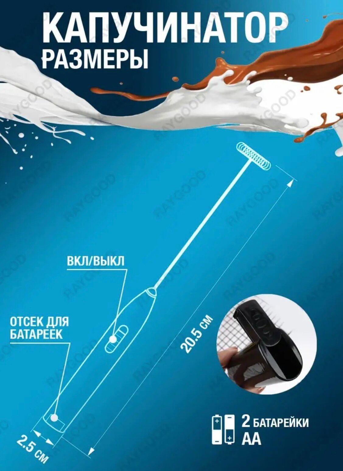 Капучинатор. Беспроводной вспениватель (с 2 сменными насадками)