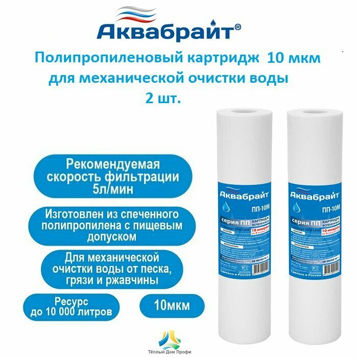 Купить Аквабрайт Картридж "Аквабрайт" ППЛ-10 М, 10" SL, полипропиленовый, для холодной воды, 10 мкм